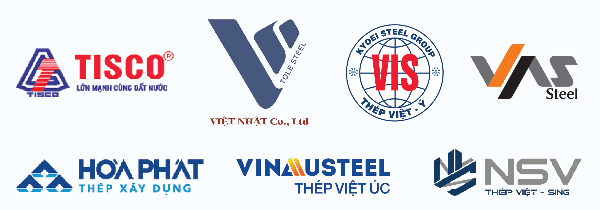 Các thương hiệu nhà sản xuất uy tín hàng đầu như: Thép Tisco, Hòa Phát, Việt – Sing (NSV), Việt Mỹ (VAS), Thép Mỹ (VMS), Việt Đức (VGS), Việt Ý (VIS), Việt Úc, Việt Hàn (VPS)……